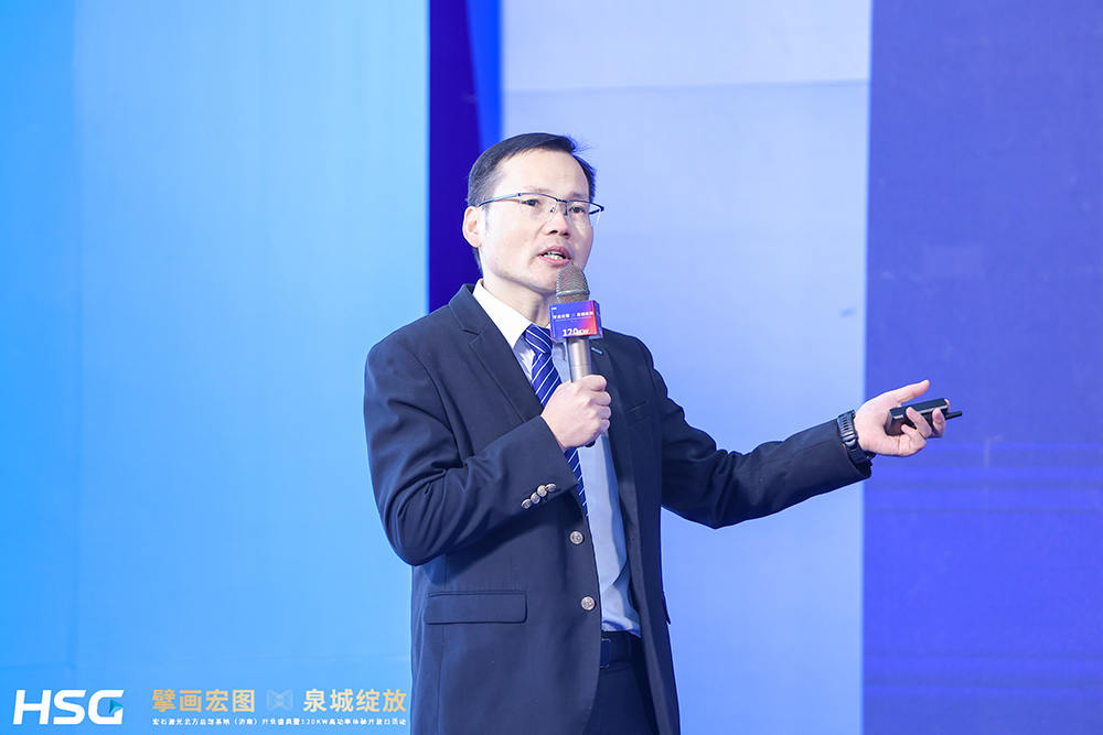 隨后,武漢銳科光纖激光技術股份有限公司副總經理李杰發表致辭,他表示:“銳科激光與宏石激光自合作以來,始終保持著緊密的戰略協作關系。雙方依托各自的技術與市場優勢,攜手攻克多項行業難題,成功推動了高功率激光器及相關設備的創新應用。宏石激光此次在濟南設立北方總部基地,并發布120kW超高功率激光切割機,突破了傳統激光切割的應用瓶頸,顯著提升了加工速度和切割厚度,尤其是在不銹鋼、碳鋼等中厚板材領域,是雙方戰略協作的又一豐碩成果,也標志著中國激光裝備制造領域邁向了更高水平。”