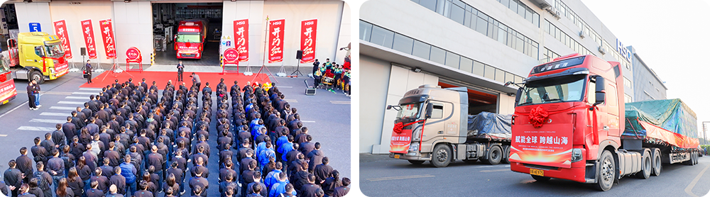 活動主會場設(shè)在佛山總部,整裝待發(fā)的運輸車輛整齊列陣,伴隨著激昂的音樂聲,禮炮齊鳴,發(fā)運車一馬當先,新一年的奮進激情被點燃。與此同時,蘇州、濟南及泰國基地同步舉行發(fā)車儀式,集中交付多批暢銷設(shè)備,展示了宏石激光強大的生產(chǎn)制造與高效交付能力,也全方位展現(xiàn)出公司穩(wěn)健運營、逆勢增長的良好態(tài)勢。